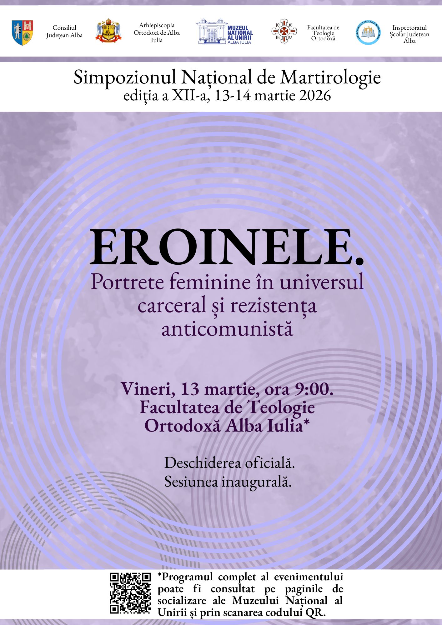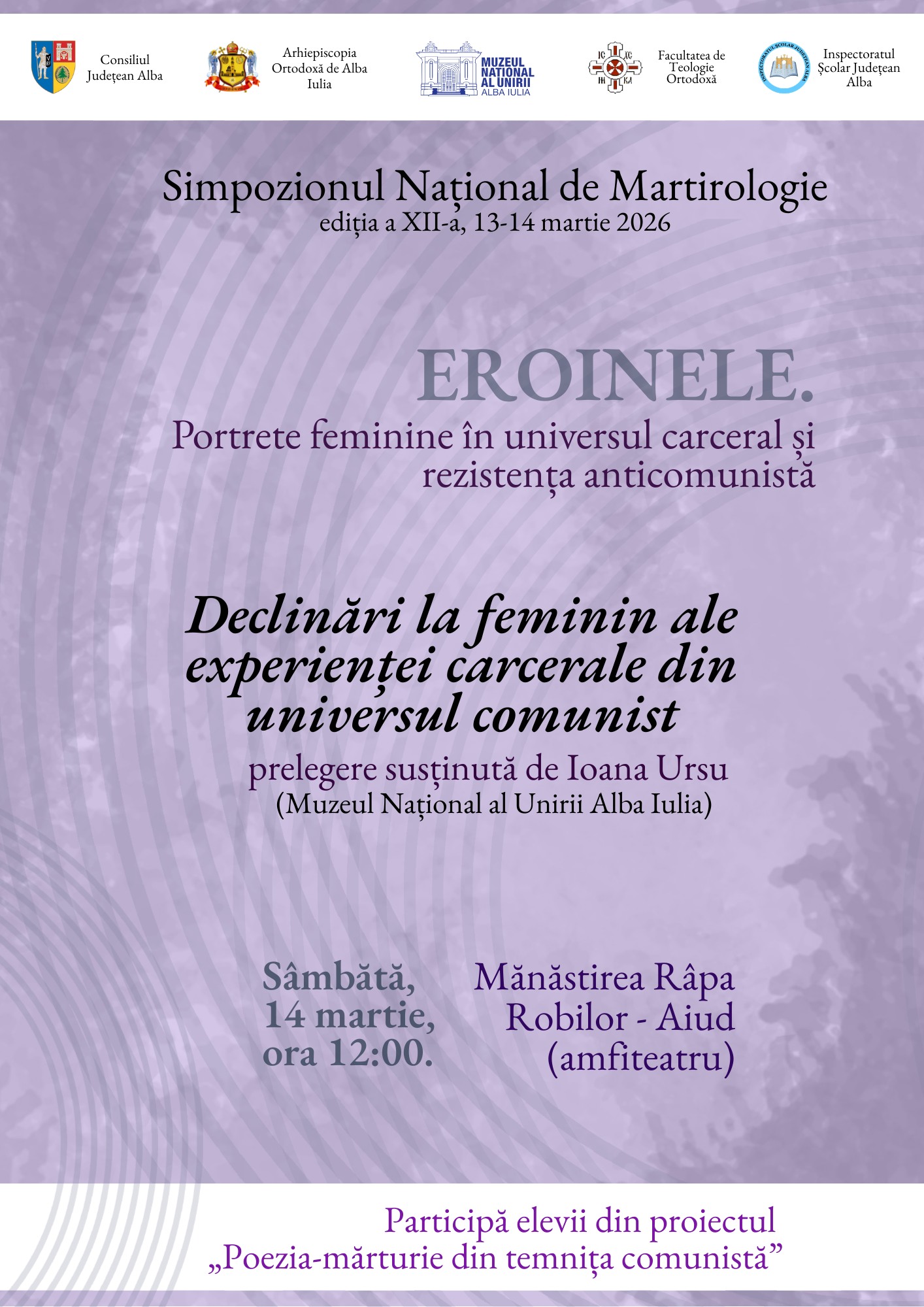 Muzeul Naศional al Unirii Alba Iulia, รฎn colaborare cu Arhiepiscopia Alba Iuliei, Facultatea de Teologie Ortodoxฤ din cadrul Universitฤศii โ1 Decembrie 1918โ Alba Iulia ศi Inspectoratul ศcolar Judeศean Alba organizeazฤ, รฎn perioada 13-14 Martie 2025, a douฤsprezecea ediศie a Simpozionului Naศional de Martirologie, cu tema โEroinele: portrete feminine รฎn universul carceral ศi rezistenศa anticomunistฤโ.