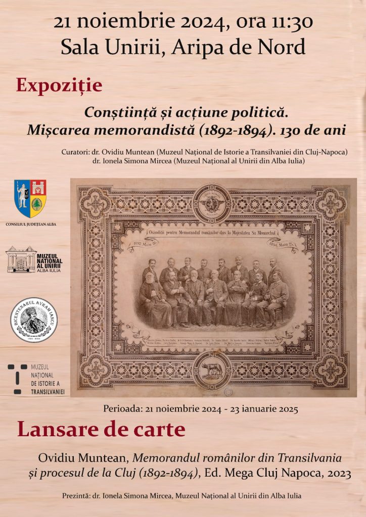 • Conștiință și acțiune politică. Mișcarea memorandistă (1892-1894). 130 de ani(Sala Unirii, aripa de nord)