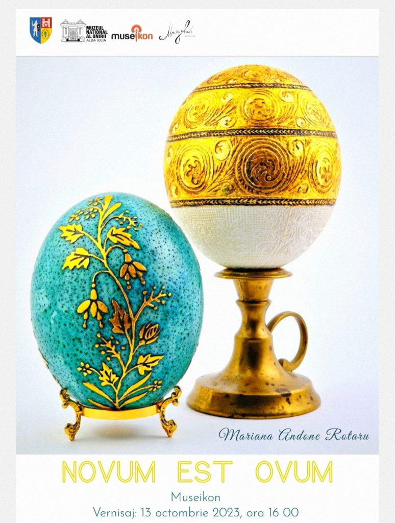 Expoziția NOVUM EST OVUM, prin ouăle încondeiate și ouăle cu decor încrustat și foiță de aur, impresionează și sensibilizează datorită măiestriei execuției celei care le-a desăvârșit procesul de înnobilare, artista Mariana Andone Rotaru.