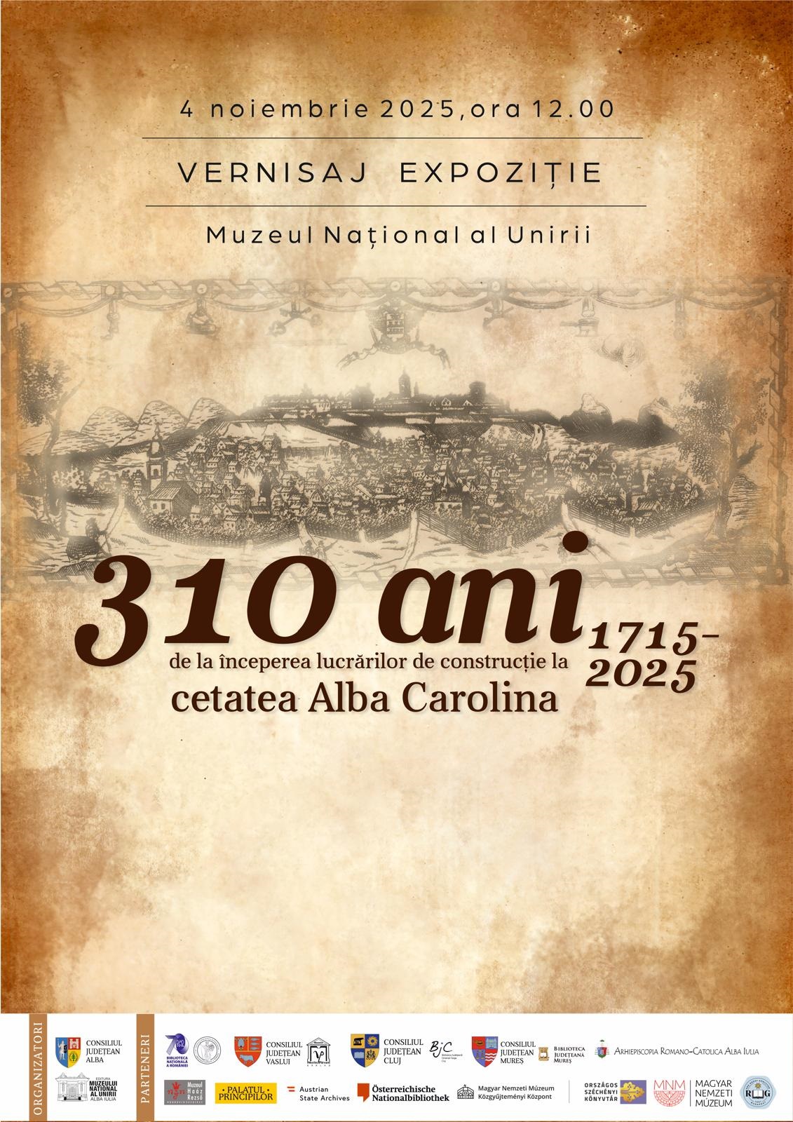 Marți, 4 noiembrie 2025, la ora 12, la Muzeul Național al Unirii din Alba Iulia va fi vernisată expoziția: 310 ani de la începerea lucrărilor de construcție la cetatea Alba Carolina. 1715-2025.