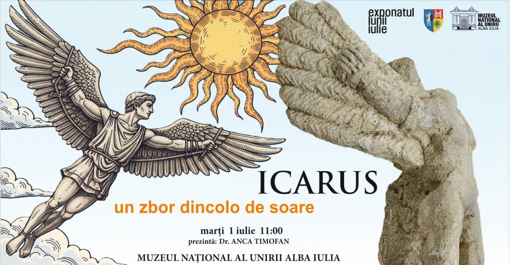 Vă așteptăm marți, 1 iulie, de la ora 11:00, la Muzeul Național al Unirii Alba Iulia, să descoperiți povestea lui Icar – un mit celebru din Grecia antică, care a inspirat generații de artiști și scriitori. Zborul lui Icar a devenit un simbol al dorinței de libertate, dar și al riscului de a merge prea departe. În centrul expoziției se află o statuetă romană rară, descoperită la Apulum. Statueta funerară din calcar este o reprezentare unică în Dacia romană – îl înfățișează pe Icar într-o ipostază nudă, eroică, simbolizând sufletul celui decedat. Zborul lui spre cer și spre moarte reflectă călătoria sufletului către astre. Sculptura descoperită la Apulum a decorat cândva un monument funerar și a fost realizată de un meșter local, în secolele II–III p.Chr.