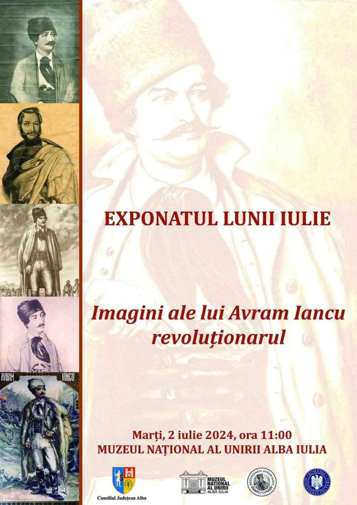 Marți, 2 iulie 2024, ora 11:00, la Muzeul Național al Uniri Alba Iulia va avea loc prezentarea Exponatului lunii iulie: Imagini ale lui Avram Iancu revoluționarul.