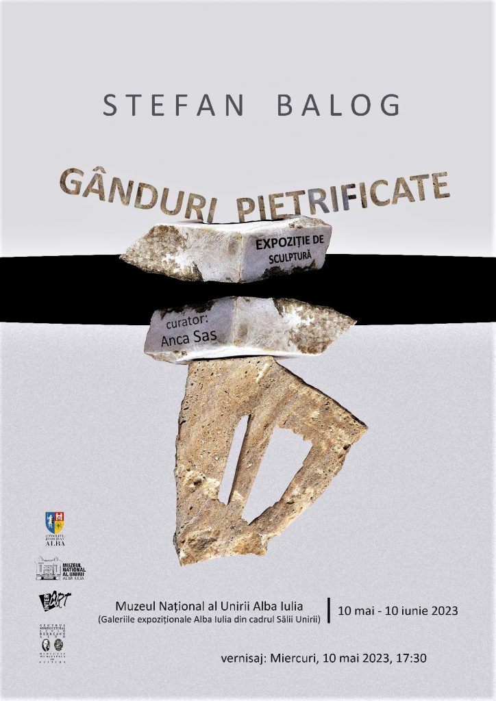 (Galeriile Expoziționale Alba Iulia din cadrul Sălii Unirii), va avea loc vernisajul expoziției GÂNDURI PIETRIFICATE semnată de Ștefan Balog. Curator: Anca Sas