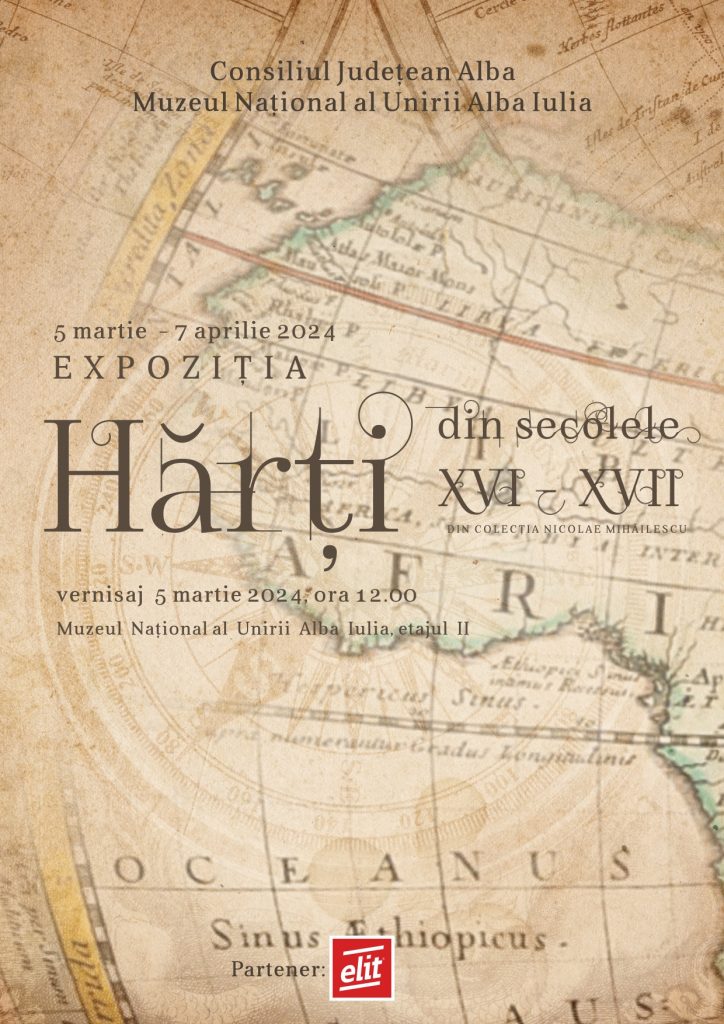 Marți, 5 martie 2024, ora 12:00, la Muzeul Național al Unirii Alba Iulia va avea loc vernisajul expoziției Hărți din secolele XVI – XVII, din colecția Nicolae Mihăilescu.
