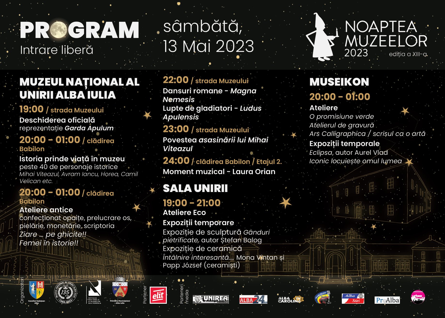 În atenția vizitatorilor / Programul muzeului pentru ziua de 13 mai 2023/ Noaptea Muzeelor. Noaptea în care istoria prinde viață