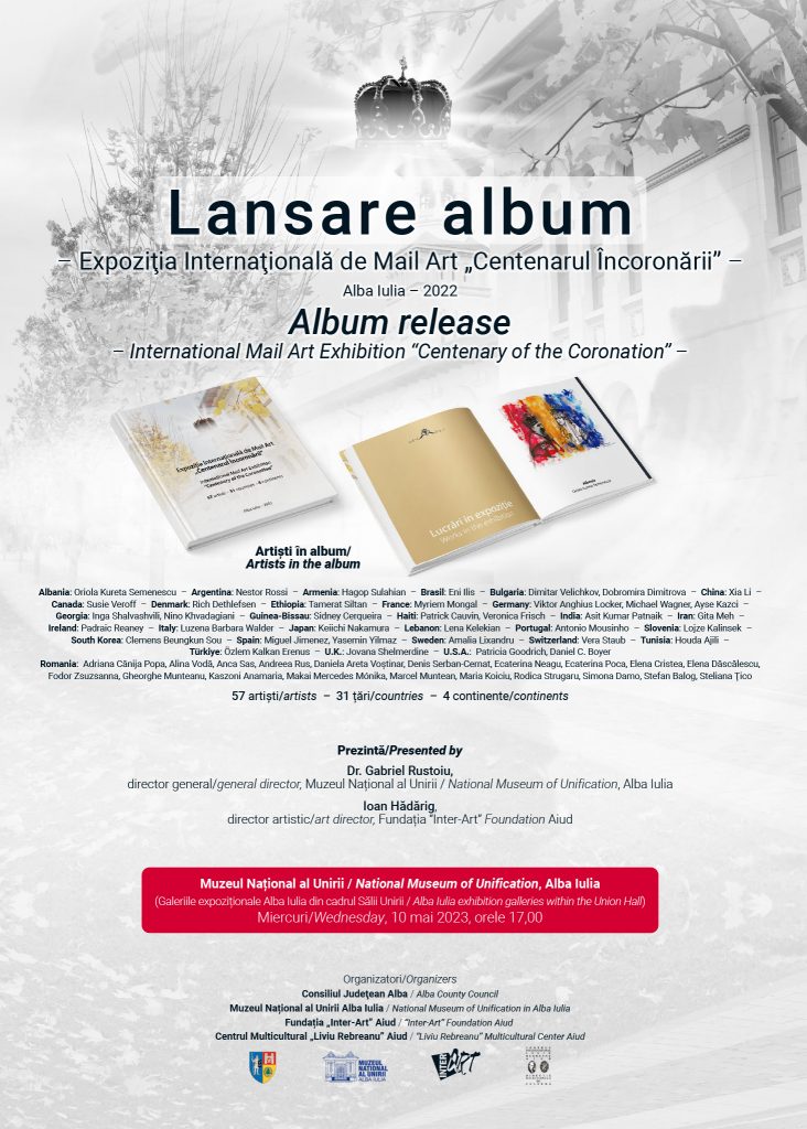 (Galeriile expoziționale Alba Iulia din cadrul Sălii Unirii), va avea loc lansarea albumului Expoziţia Internaţională de Mail Art – CENTENARUL ÎNCORONĂRII