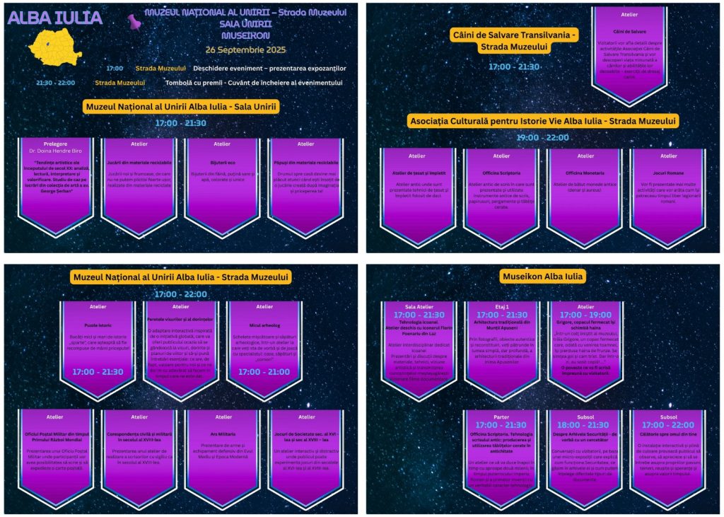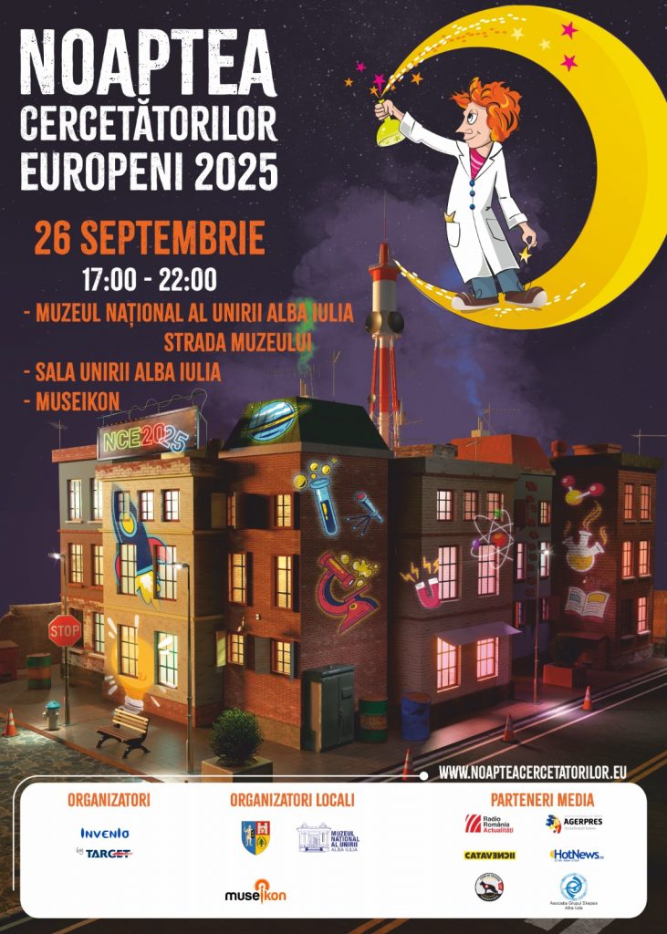 Pe 26 septembrie, între orele 17.00 și 22.00, Muzeul Național al Unirii Alba Iulia, alături de strada Muzeului, Sala Unirii și Museikon Alba Iulia, se transformă în spații interactive unde publicul de toate vârstele este invitat să descopere știința așa cum nu a mai făcut-o până acum.